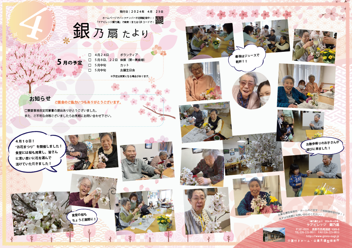 会報誌「銀乃扇たより」を毎月発行しております。